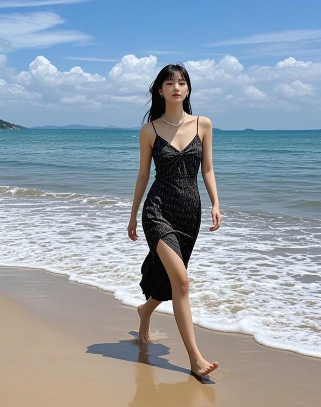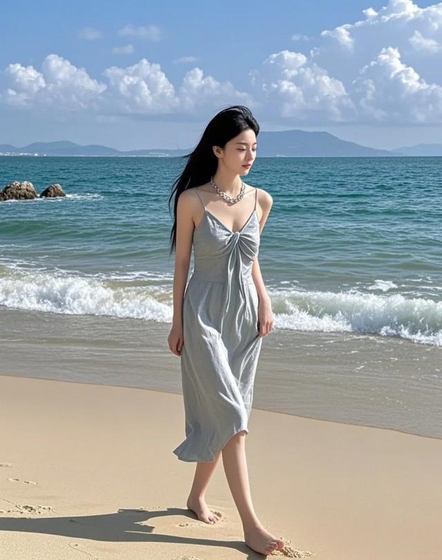 刘亦菲十七八岁时在海边游玩留下的一组照片,肚子上好多肉肉啊!