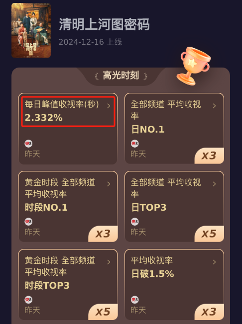 连续三天斩获全国收视冠军,《清明上河图密码》也是好起来了。
