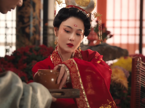 她完全高高在上的冷漠状态,加上繁华的装扮,瞬间让她成为整场戏的焦点。