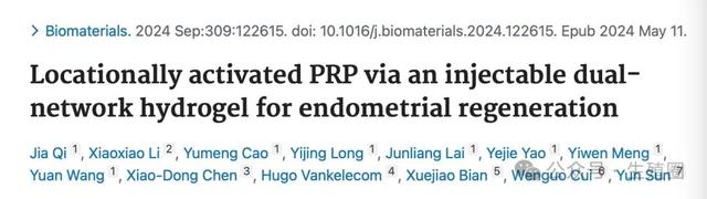 这款水凝胶可快速凝胶化和自我修复,局部定位于子宫内膜并原位激活富血小板血浆释放生长因子,从而发挥促进内膜修复的作用。