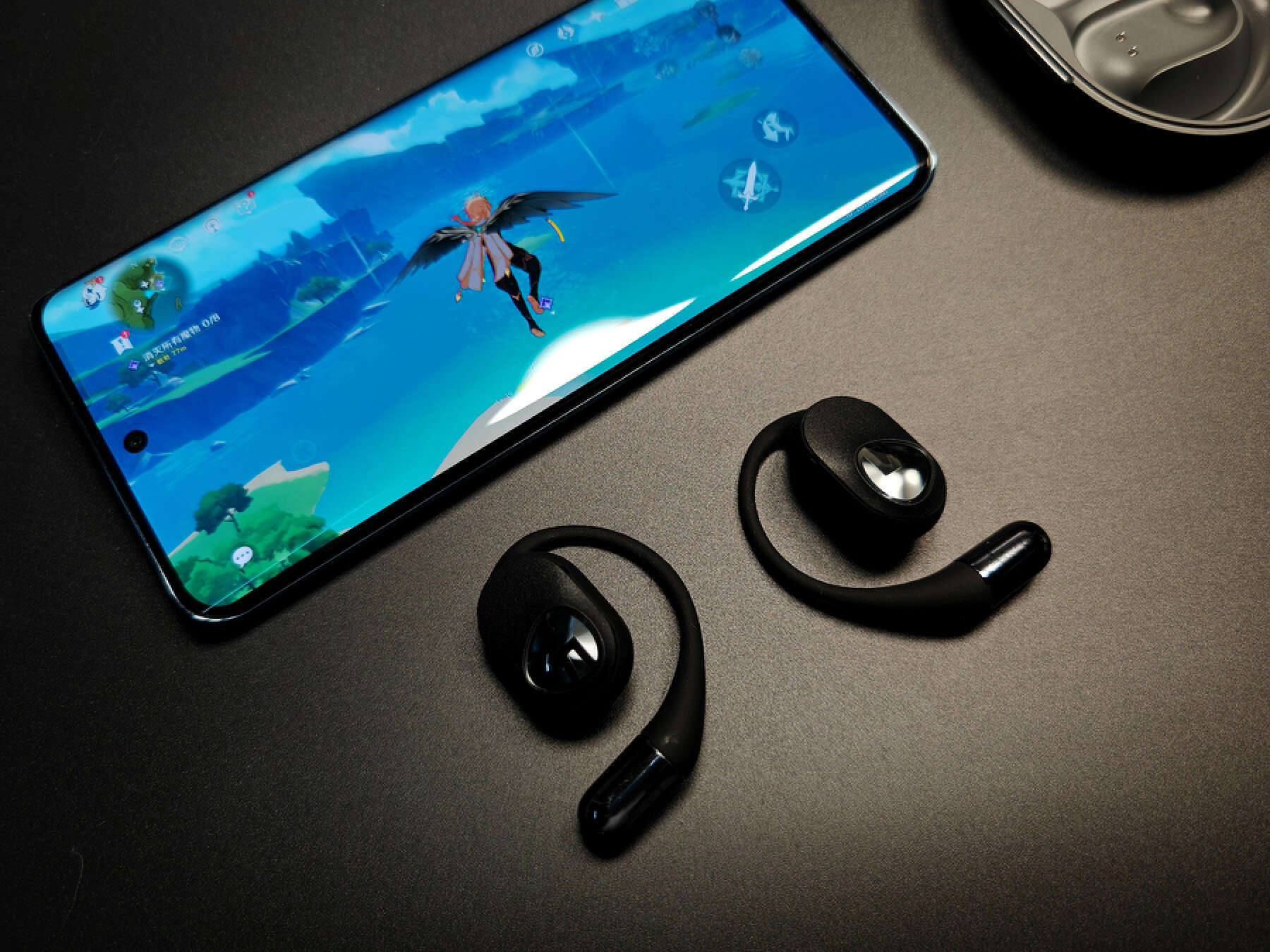 这样的人体工学设计,不仅仅可以减少耳朵的压力,同时还减少了开放式耳机的漏音问题,出音孔采用定向传音技术,声音直接传进耳朵,能够明显的改善耳机漏音问题,这对于一款非入耳式耳机来说是非常必要的。