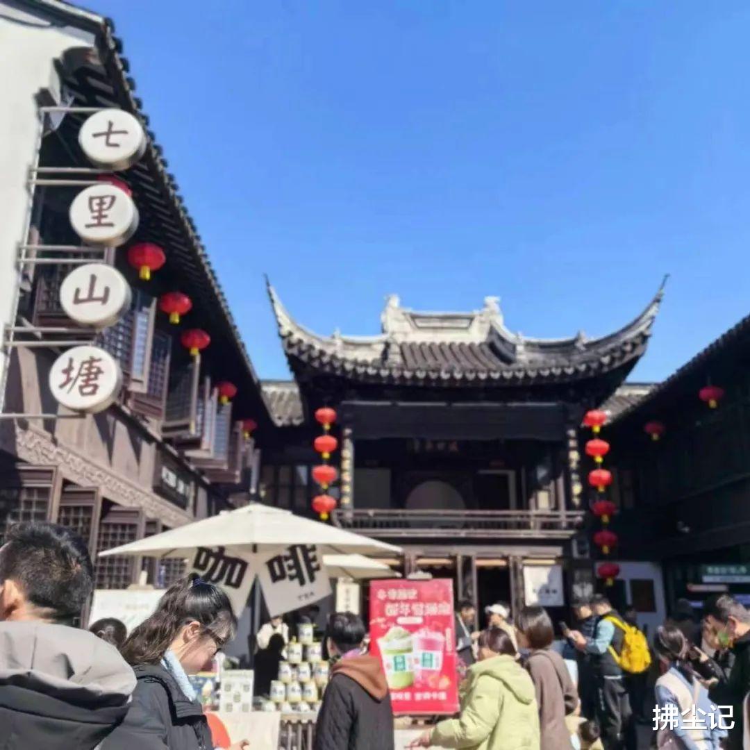 坐船去七里山塘,船上半个小时,经过了大概十多座桥,小桥流水人家,名副其实。