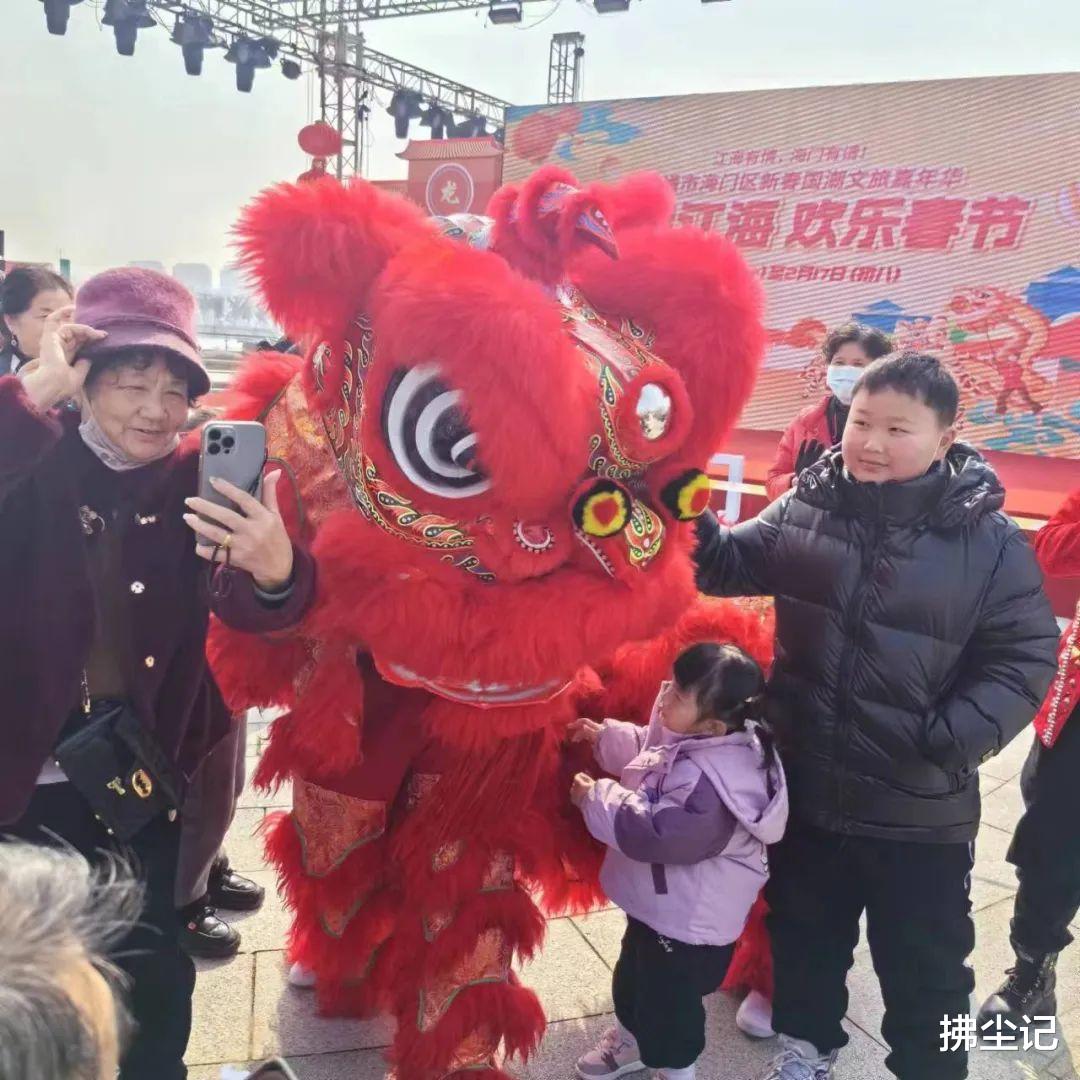 公园广场有新春节目表演,第1个是舞狮,2个年轻人,舞得眼花缭乱,后面还舞到了观众席,主持人说,摸摸狮子头,吃穿不用愁,摸摸狮子背,荣华又富贵,摸摸狮子尾,做事不后悔,于是大家纷纷去摸、合影,场面甚是喜庆。