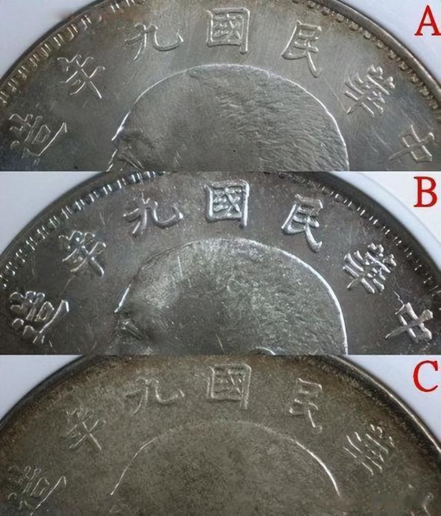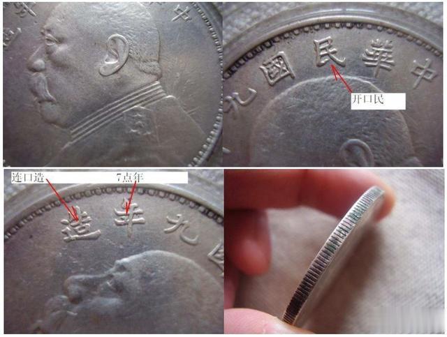 字,图B为十年),此连口造字目前仅见于这一版,此版仅见数枚,本人 的图片数据里仅见一枚,从原始图片上看不出任何改刻的地方或变 造之处,亦有流通的痕迹,人像也确实有细发版的特征,只不过磨损 较大了些,个人认为此币应为真品无疑。