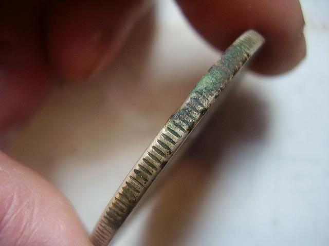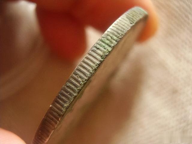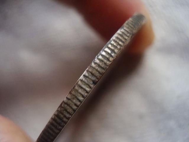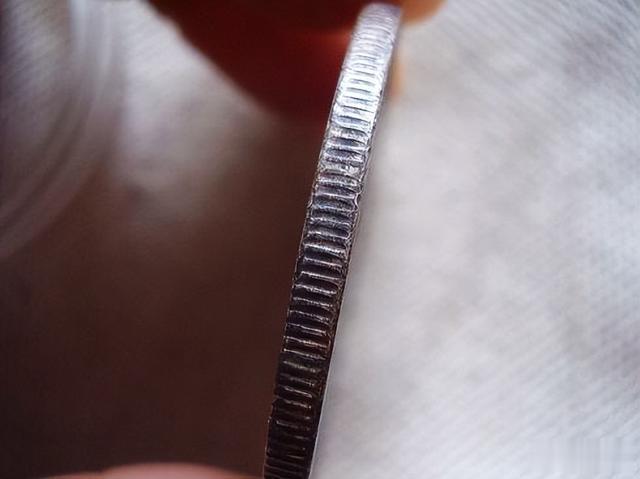 最大的特点就是人像,字体及图案都很粗大, 整体看起来就好像压力不足而制出的瑕疵 品,无论字体或图案都非常的模糊,有些甚至 模糊到就连内齿都快看不到了,另此版所见 多数都有衣领透印的现象,一般来说,会有透 印的情形产生一般都是压力过大所造成的, 但奇怪的是,如果压力足够的话又何以会造 成此版钱币图案模糊的现象呢?这可就不得 而知了,此版所见品相都不错,唯一的缺点就 是一枚未使用的原铸光也很不明显