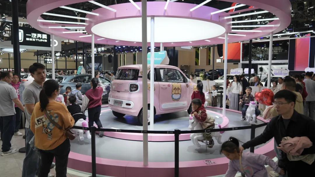 在体验区,市民李女士正带着5岁的女儿乘坐 “奔腾小马旋转木马”—— 这是展位特别设置的儿童互动区,三座缩小版小马模型固定在旋转底座上,孩子按下方向盘上的喇叭,就会播放 “欢迎乘坐奔腾号列车” 的语音。“本来是带孩子来看热闹,没想到她抱着小马玩偶不肯走。” 李女士笑着说,“销售人员说买车送旋转木马主题的儿童安全座椅,这对有娃家庭太贴心了。”