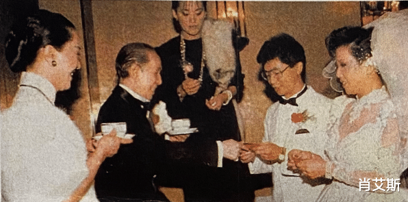 图中为霍文芳与洪国华向新马师曾、洪金梅夫妻俩敬茶