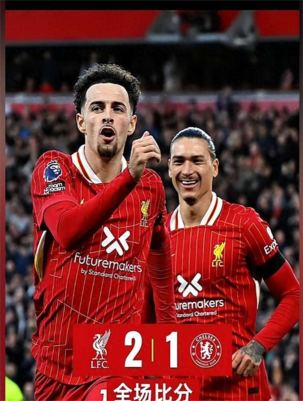切尔西在丢球后展开了猛烈的反攻,但利物浦的防守非常出色,成功抵挡住了切尔西的猛烈进攻。最终,利物浦以 2 - 1 的比分战胜了切尔西,迎来了七连胜,并且重新夺回了积分榜首的位置。