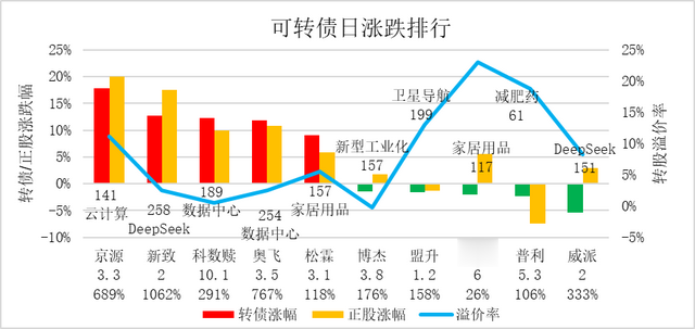 搞环保的京源环保成立了云计算公司,云计算概念加持,正股突然20cm涨停,京源转债暴涨居前;新致转债、奥飞转债、松霖转债随正股大涨上榜;就连宣布赎回的数据中心科数转债,不惧赎回压力,也随正股大涨上榜。