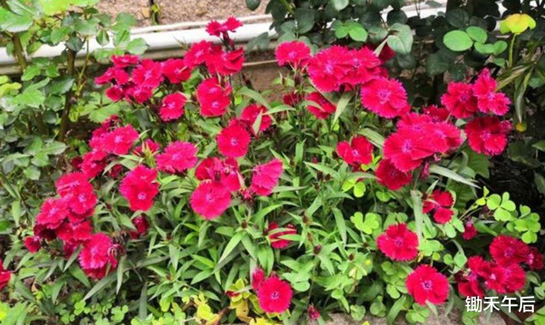 有网友分享,在他的山区民宿中,石竹与杜鹃搭配,春天时一片花海,非常壮观。