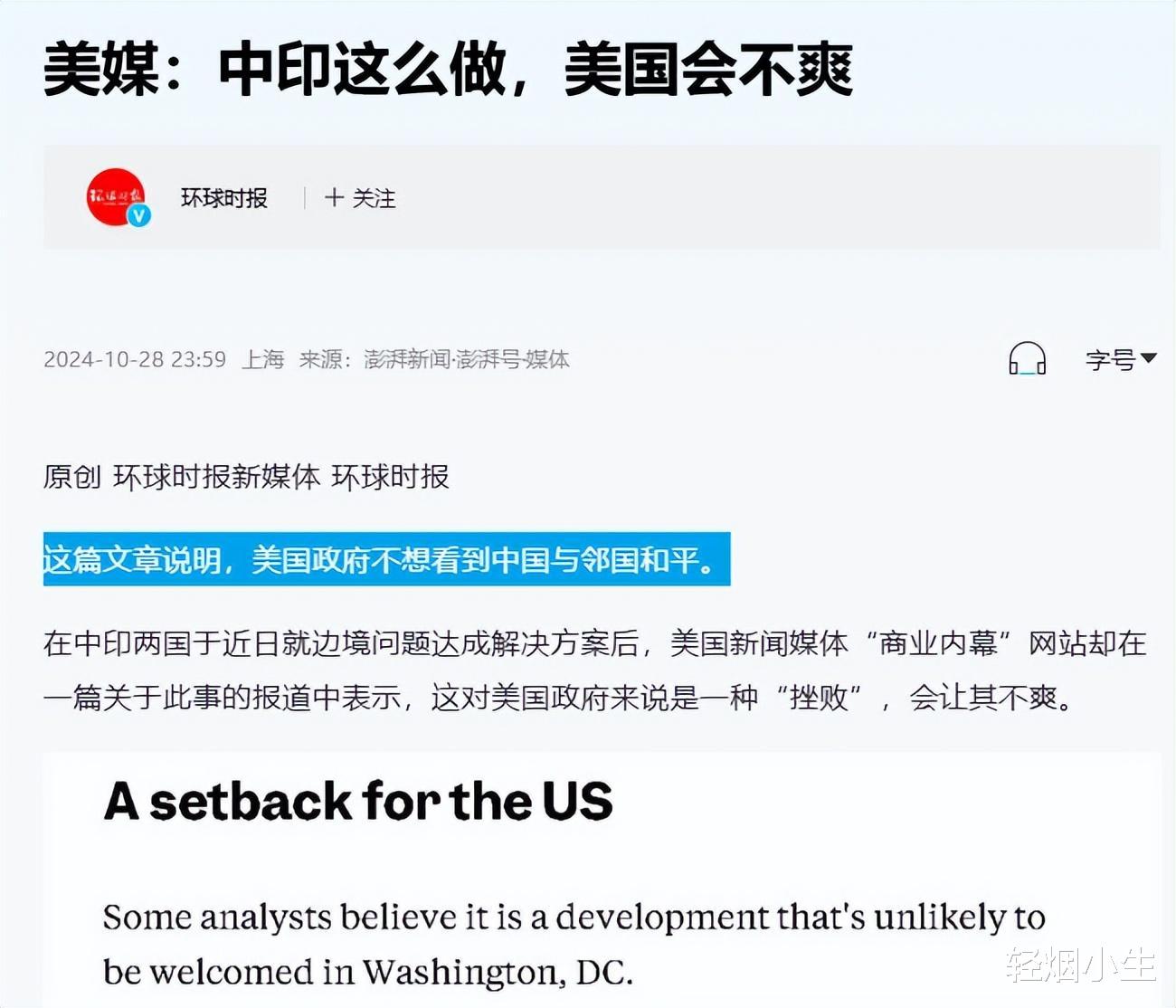信息来源: 环球时报 2024年10月28日 美媒:中印这么做,美国会不爽