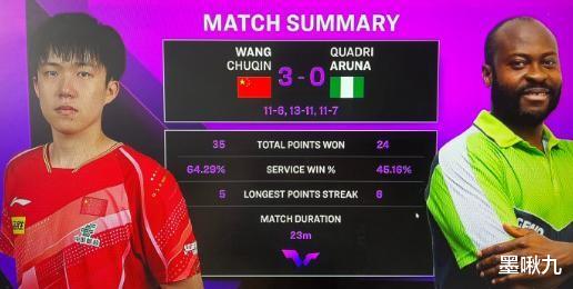如果说王艺迪的胜利是对抗强敌的“硬仗”,那么王楚钦的表现则是“稳中带险”。面对尼日利亚选手阿鲁纳,王楚钦以3-0战胜对手晋级16强。比分看似轻松,但过程却并不简单。三局比分分别为11-6、13-11、11-7,尤其是第二局,王楚钦在落后的情况下逆转取胜,展现了他成熟的心理素质。