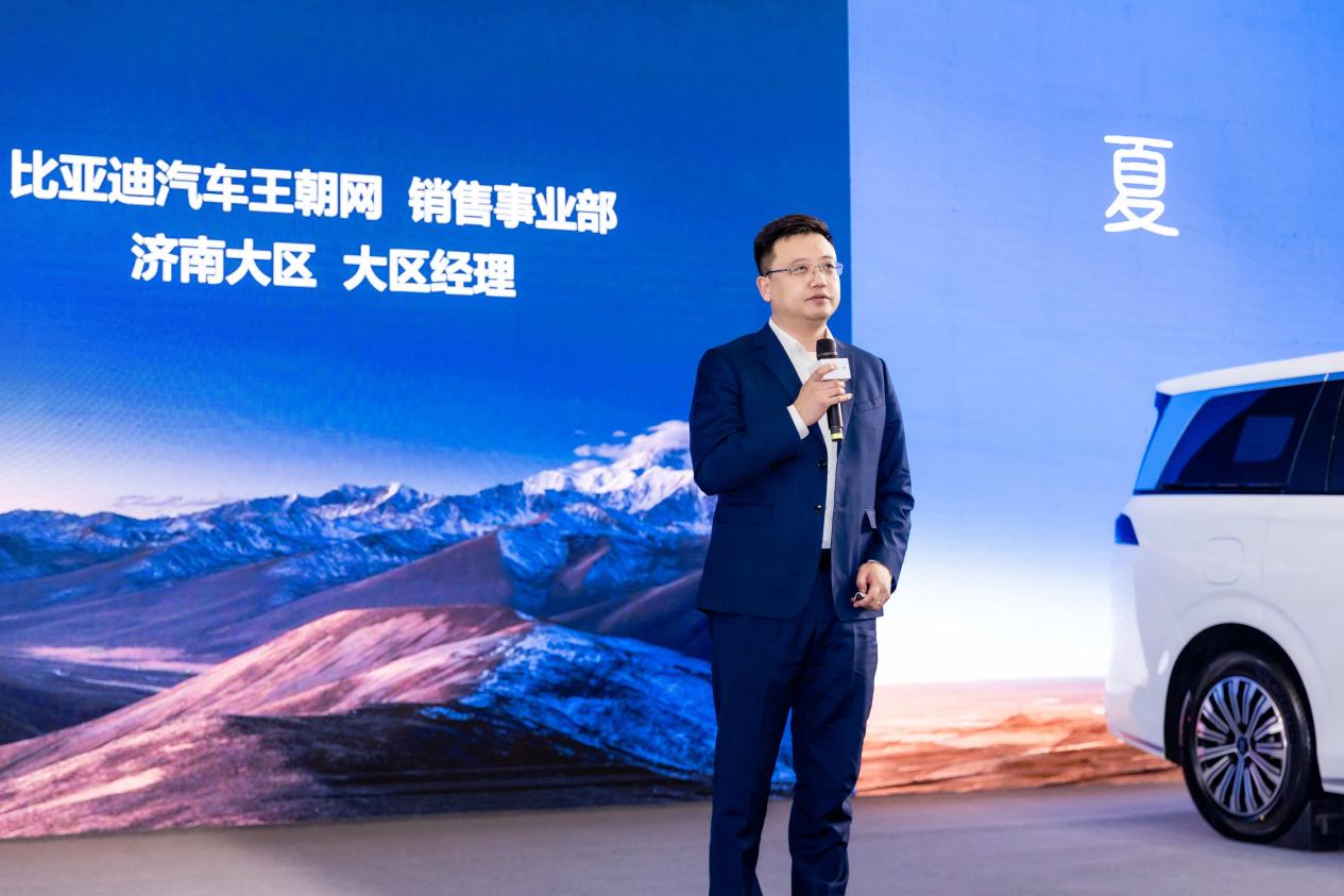 比亚迪汽车王朝网销售事业部济南大区大区经理刘志国率先登台,其激昂致辞揭开了夏的发展传奇,深入剖析这款车上市对比亚迪王朝网的里程碑意义。他直言传统 MPV 的诸多弊病,如油耗高似无底洞、动力疲软、操控笨拙、停车艰难、智能配置匮乏、驾驶辅助缺失、设计单调无趣等,而比亚迪夏正是破局利刃,七大核心优势锋芒毕露,誓为用户重塑出行新体验。