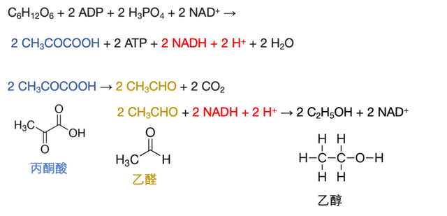 图9 酒精发酵:丙酮酸产生乙醛后接受【H】。