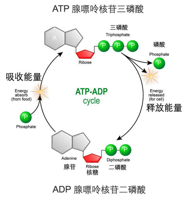 但是,生命不是“一把火”,分解代谢糖类并非一烧了之,而是会产生能量和中间代谢产物。其中能量以ATP(三磷酸腺苷)的形式进行流转,可以用于各种生命活动;而中间代谢产物可以用于合成其他重要物质,例如氨基酸、核糖、脂肪等。