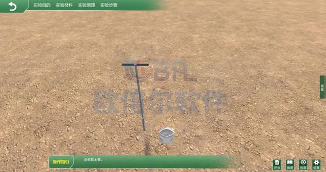 本部分主要包括土样采集、土样处理、土样分析。在3D田地场景下,使用取土器完成采集,然后转移至处理室。在土壤处理室学习土样处理方式。