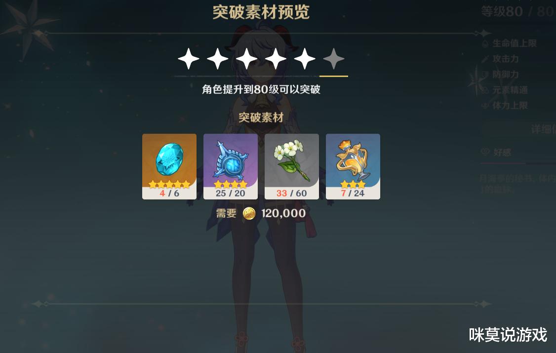 四星80突破就好,没必要升级,因为升级升的属性太低了还不如让辅助或者辅C拉到80级突破,五星可以升一下,因为五星基础高,升级获得的属性也高