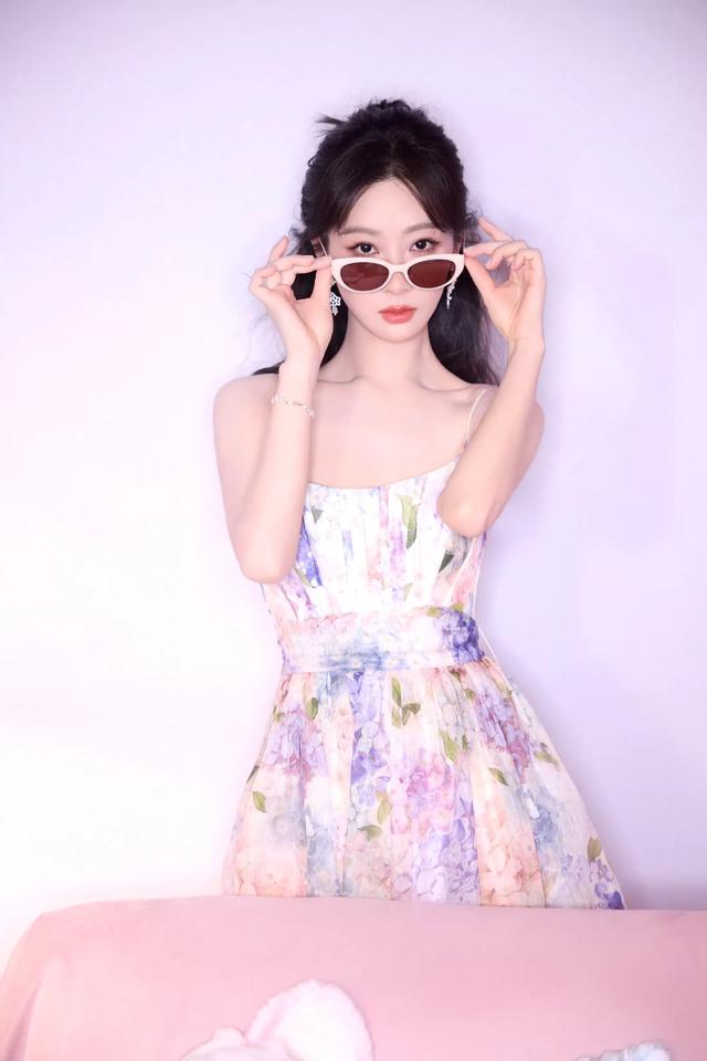 杨紫紫色碎花裙写真,明媚阳光,每一帧都氛围感满满