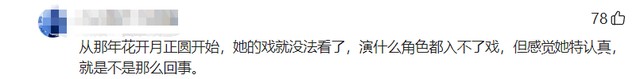 “从《那年花开月正圆》开始,她的戏就没法看了,演社么角色都入不了戏,但又感觉她特认真,反正就不是那么一回事!”