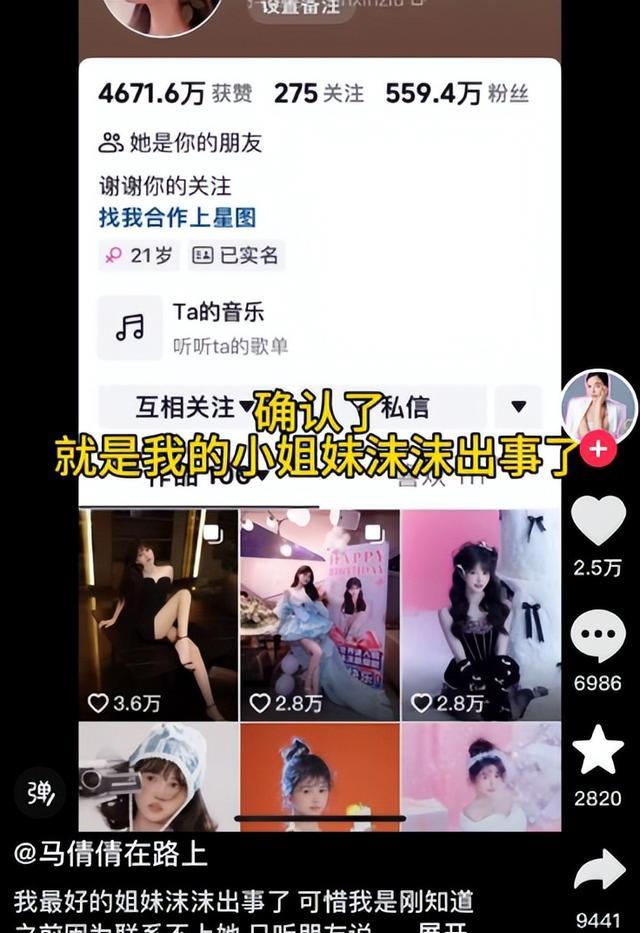 除了散打哥之外,沫沫的好姐妹“马倩倩在路上”博主更是站出来为姐妹澄清,确认了三只羊的沫沫的确出事了的事实,说自己在很早之前就已经开始联系不上她,多次发消息也没有任何回应,直到现在沫沫的抖音账号已经长达九个月没有更新。