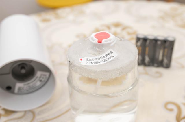 打开包装后,除了一台诗杭自动感应洗手机主机外,配件方面分别有氨基酸泡沫洗手液1瓶以及5号电池4节。值得一提的是,干电池的设计可以在不同场景使用,这样像在洗手盆、卫生间这些环境中都可以随时移动。