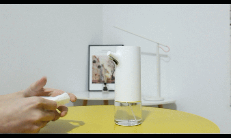 通过动图我们可以发现,出泡沫速度非常快,简单搓两下实现高效的清洁,感应出了一次之后不会重复再次出泡沫,除非再次将手放到感应区域,全程自动,不用手动操作。
