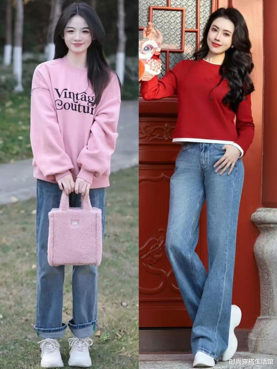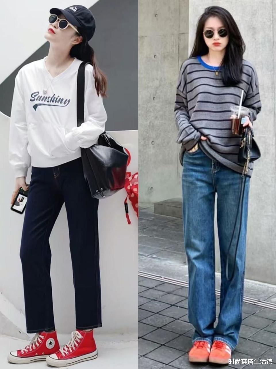 常见的牛仔裤版型有修身、直筒及阔腿款,贴合腿部线条的修身款对身材的要求偏高,只适合身材纤瘦的女性,一旦微胖女人穿着就会显壮显腿粗;宽阔有风格的阔腿裤看似遮挡腿部赘肉,可与本就休闲宽松的连帽卫衣搭配,双倍宽松下会显拖沓。