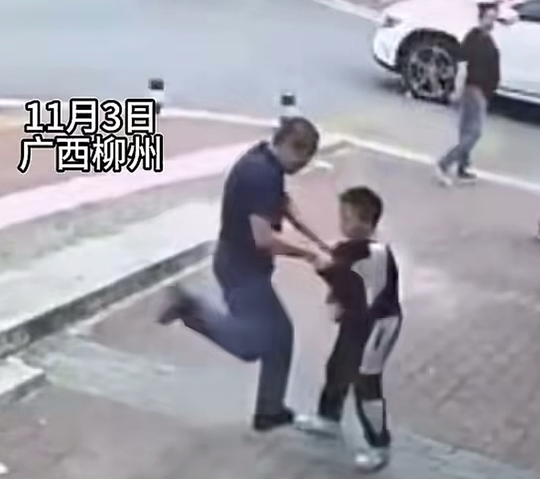 2023年11月3号,广西柳州一小学附近,一名小男孩放学后路过一托管班门前时,可能是因为好奇,也可能是想要去找在托管班的朋友。