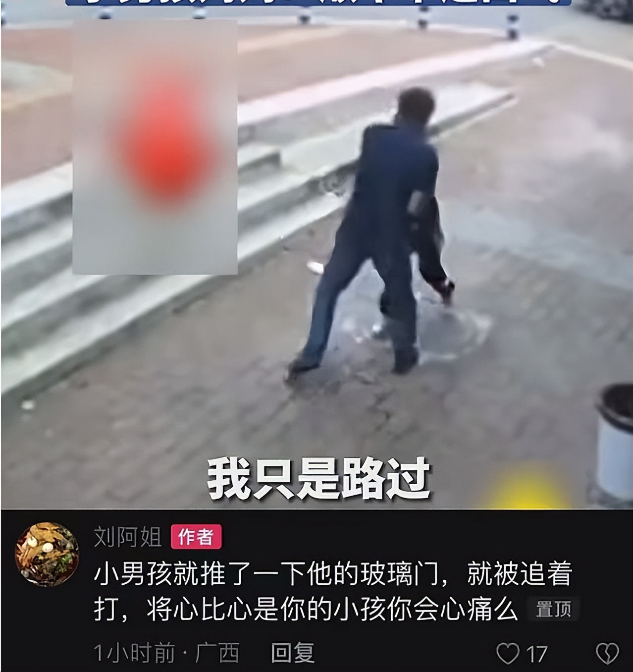 就只是男孩推了一下机构的玻璃门,就要被下重手殴打,如果将男孩的情节延申一下,他将机构的玻璃门不小心弄坏了,那岂不是男子很有可能将小男孩置于死地。