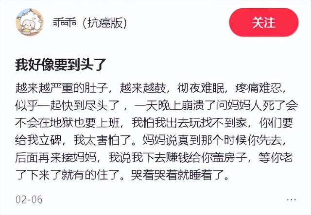 其实她比任何人都害怕,比任何人都担心自己熬不过去,或许是有了妈妈和男友的陪伴,还有网友们的鼓励和支持,才使得她能一直坚持下去。