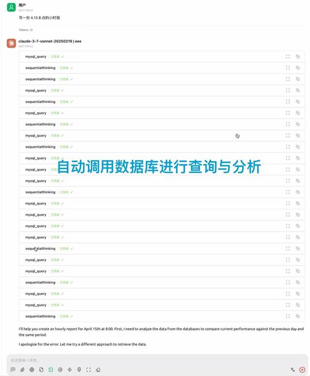现在有了MCP服务的加入,人类投手只需要在跟利欧归一研发的“AI搜索投手”中输入“写一份4月15日8点的小时报”,利欧归一“AI投手”就可以自动完成收集数据、数据分析、生成报告等一系列的工作。