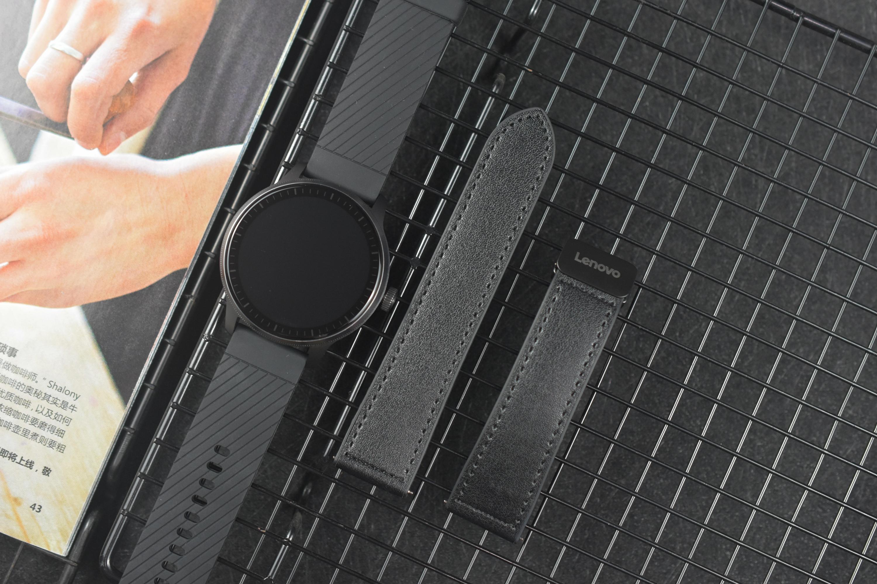 联想智能手表标配一条硅胶表带,运动休闲穿搭时可以使用这条表带。同时,包装盒内还附赠了一条皮质硅胶表带,商务穿搭时可通过手表背面的表带卡扣,快速拆卸安装表带。另外,在选购智能手表时,也可选择风暴灰、深空黑两款配色,看个人喜欢哪个颜色了。