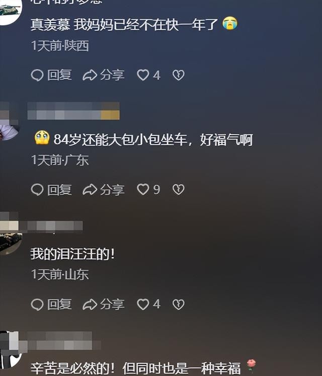 “84岁拎着大包小包还能坐车,也是一种福气”