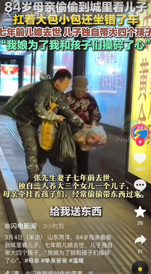 但反过来想想,如果张先生的家庭条件允许的话,他怎么可能忍心让老母亲独自一人在农村生活呢?