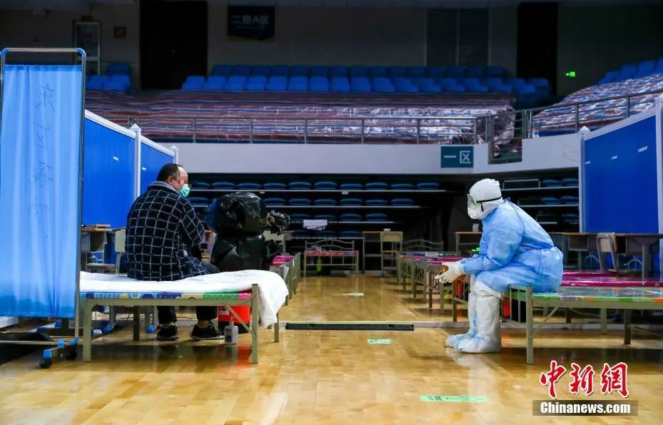 3月10日,随着最后一批49名患者从洪山体育馆走出,运行了35天的武昌方舱医院正式休舱。一名医生和患者面对面聊天,在这里他们既是战友,也是朋友。中新社记者张畅 摄 ▼▼▼