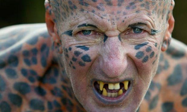 英国前特种部队士兵汤姆•莱帕德全身纹上金钱豹一样的斑点,被人们称做是“斯凯岛豹人” 。
