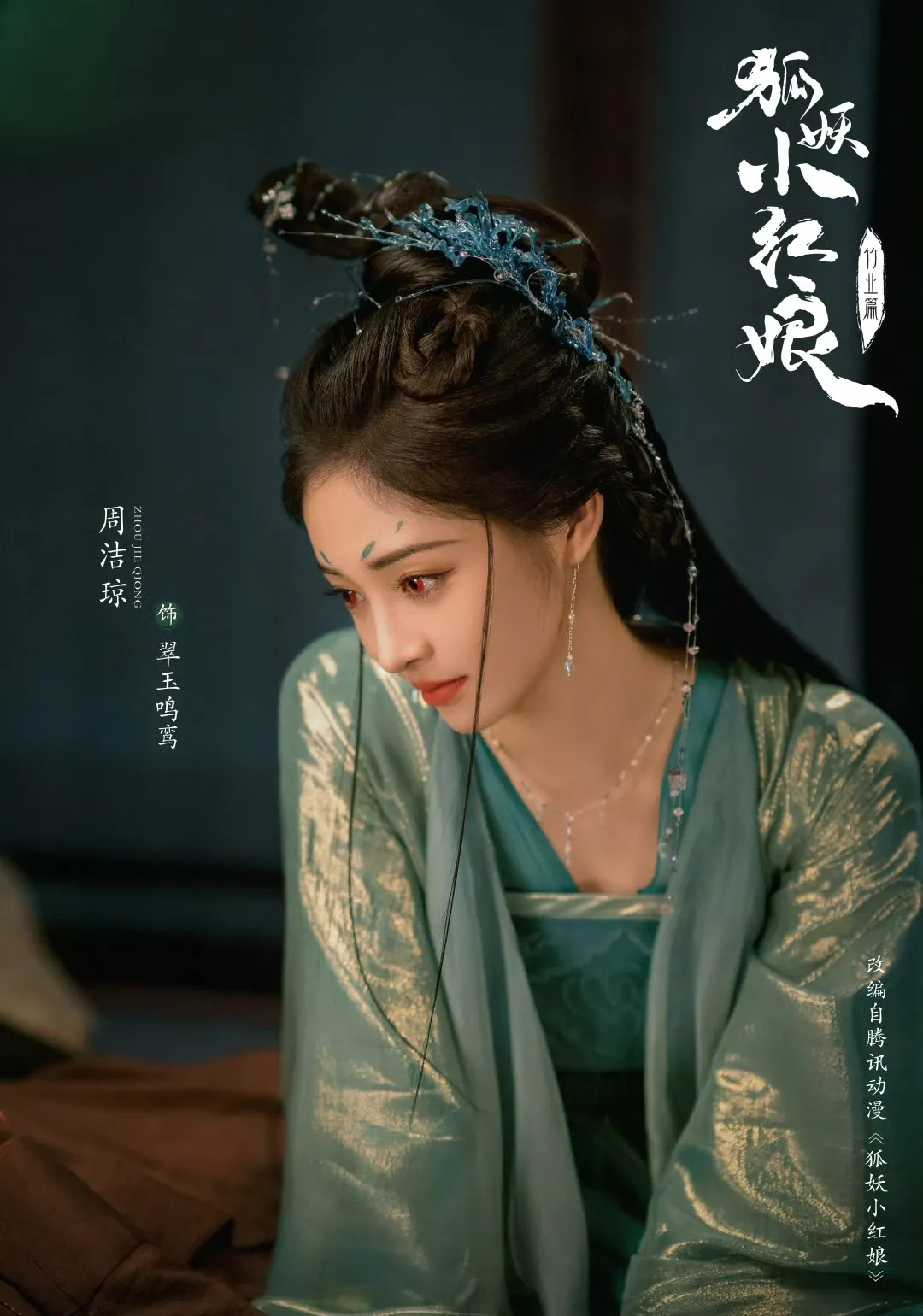 这次她饰演的翠玉鸣鸾扮相非常亮眼,红色的美瞳一看就不简单,期待她不一样的角色。