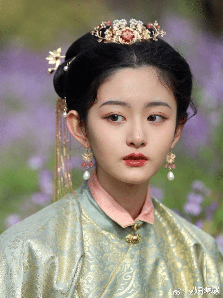 硕大的发型+丫鬟的服饰,显得她的身材粗壮,还没气色。
