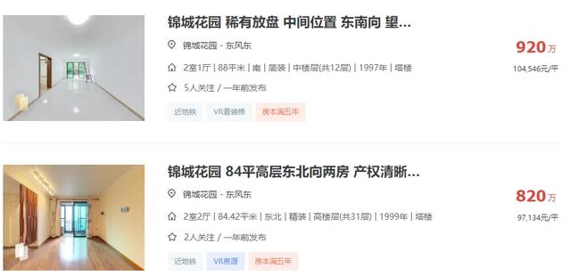 锦城花园、东风广场、万科金色家园、君汇世家,二手平台挂牌均价在7-15万/平不等,如果不是这两年行情拉低了价格,分分钟还会更高。