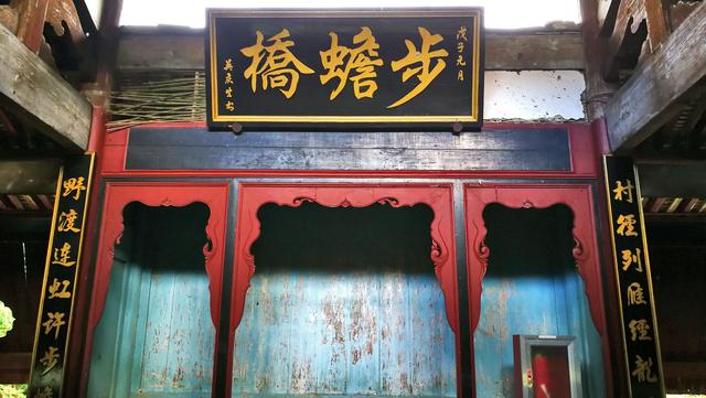 东南向次间设神龛供奉平水王大禹,其上额书“步蟾桥”古匾。