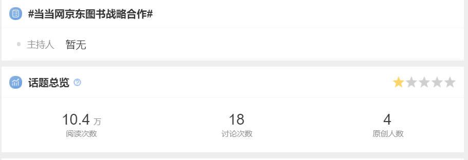 对于此次联姻,当当网和京东图书官微还来了一波互撩。然而,不高的留言量和相关微博话题讨论度,似乎透露着某种凄凉——谁还记得当当网?