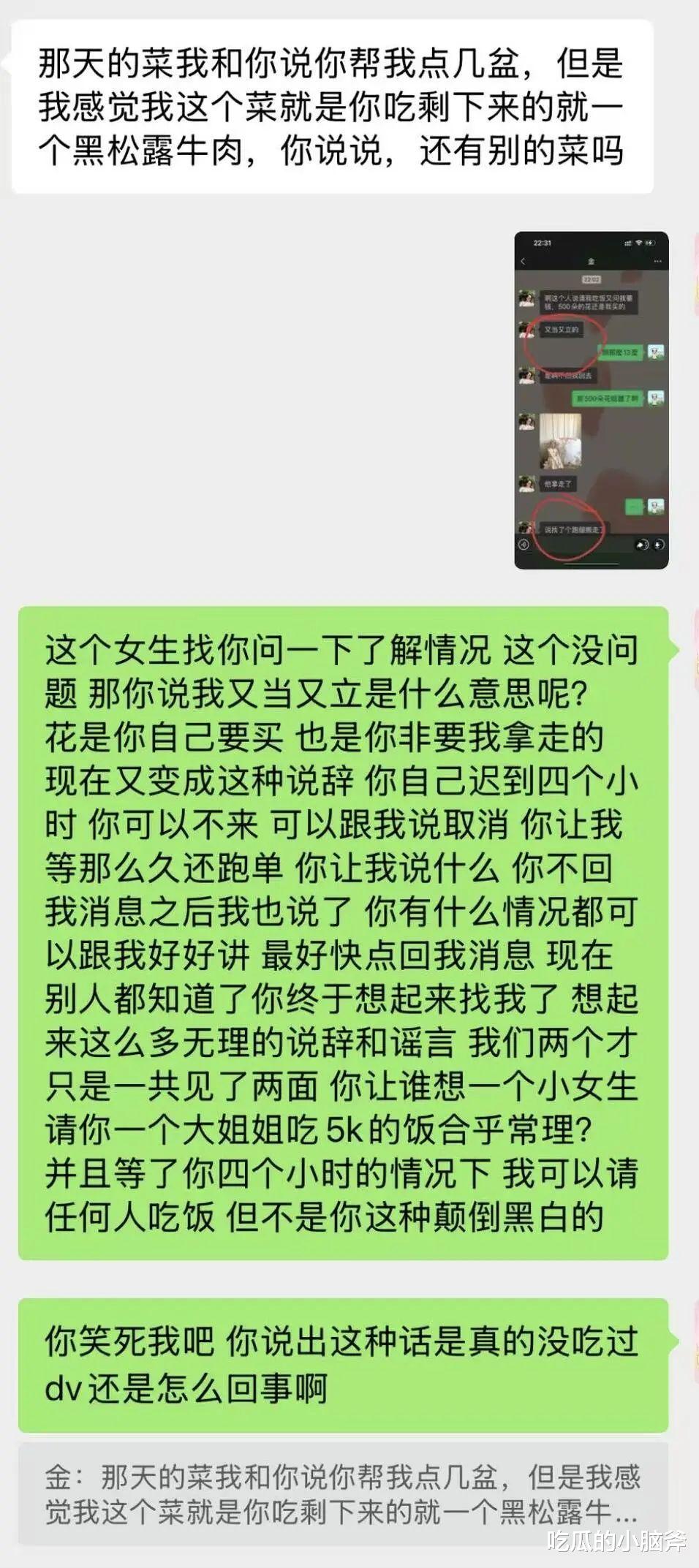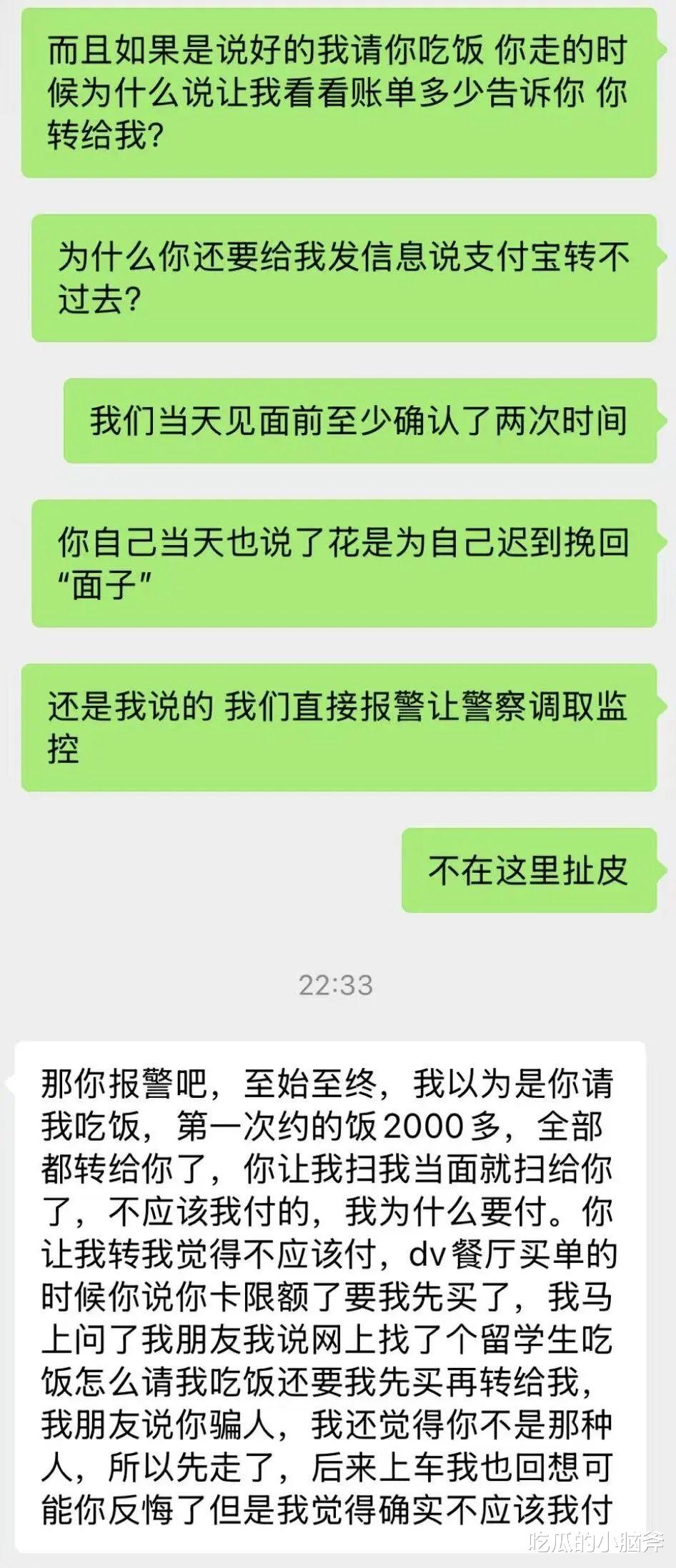 小姐姐越想越委屈,忍不住吐槽,说自己也不差这 2000 多块钱,本来第一顿饭请女主喝 5000 块的酒,那是真心把她当朋友。