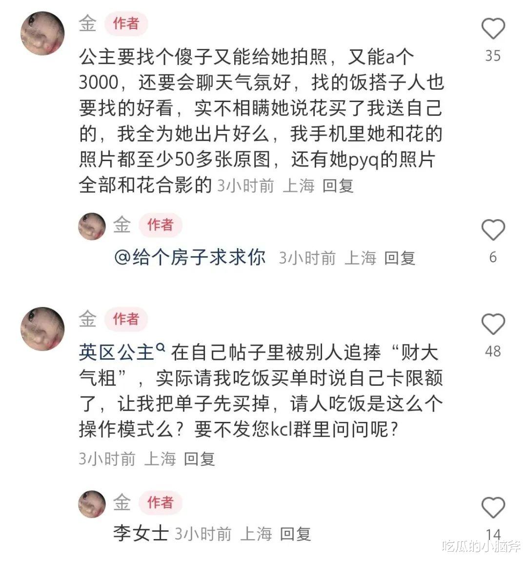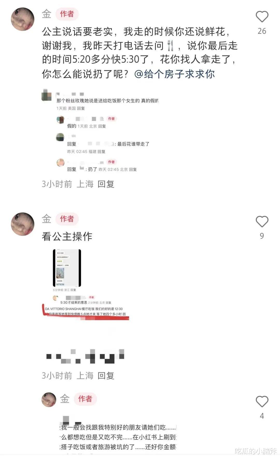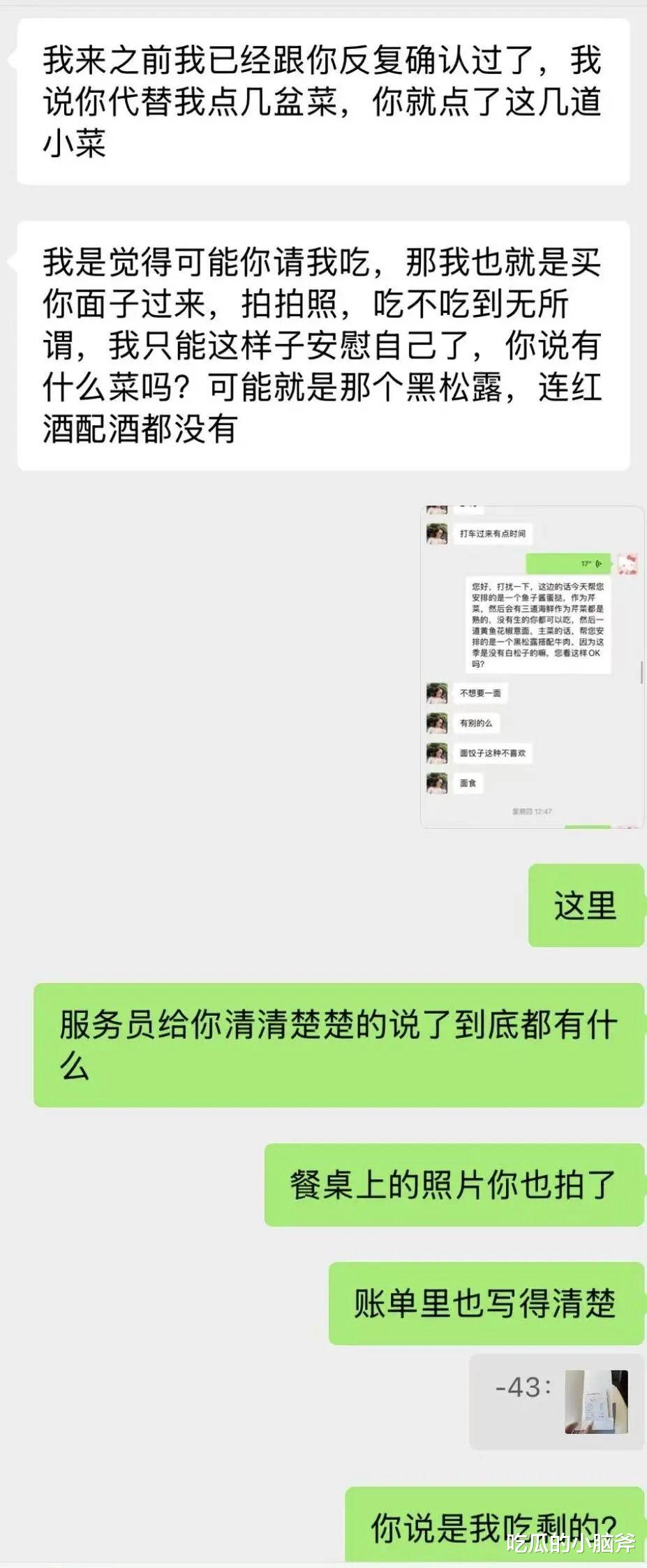 接着就是常规的吃饭拍照环节,这顿饭两人一共吃了 5700 元,小姐姐让女主 A 给她 2600 块,自己还是付大头。