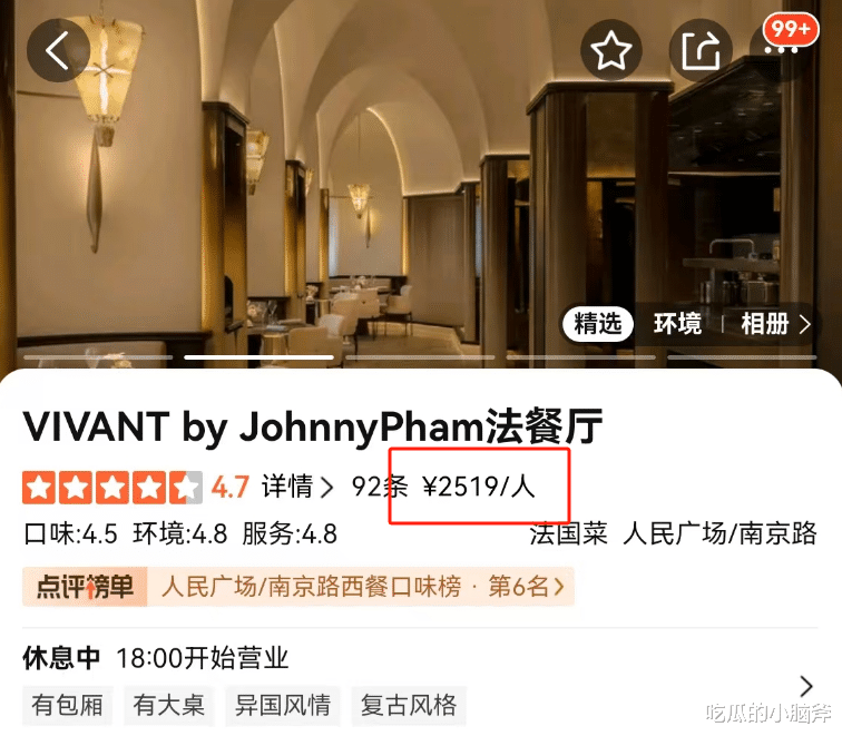 我好奇搜了搜这 VIVANT 法餐厅,好家伙,人均消费高达 2519 元!