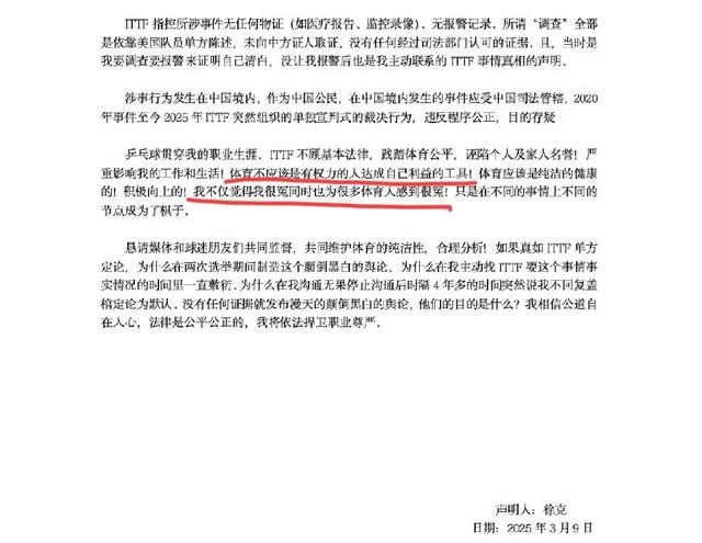 韩国华裔名将田志希老公、乒乓球运动员徐克被ITTF国际乒联公开文件指证涉嫌性侵事件又出最新进展。