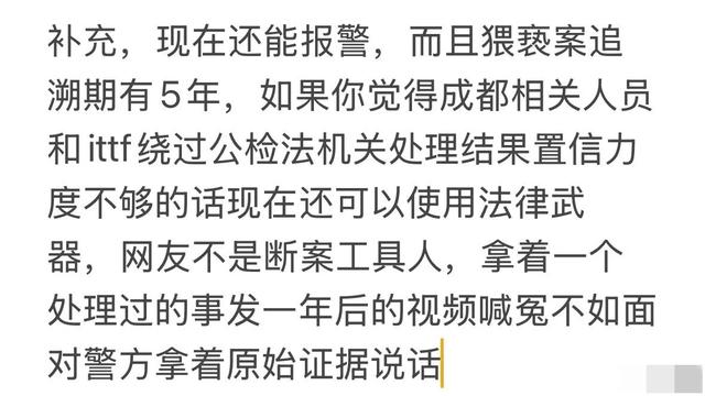 通过徐克本人提供录音,如果录音为真,确实可以分辨出徐克事发当时想要报警处理。但是被此ITTF女官员拦下。此ITTF女官员在对话中明显表达了惧怕此事被公开后,沦为某种斗争的角力点。甚至明确表示了徐克就是被卷入某种斗争后被某人牺牲掉的一个牺牲品。