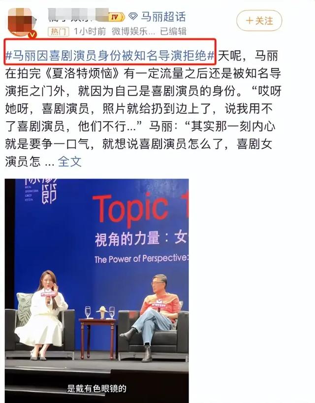 所以当马丽因为喜剧演员身份被知名导演拒绝,也不足为奇。