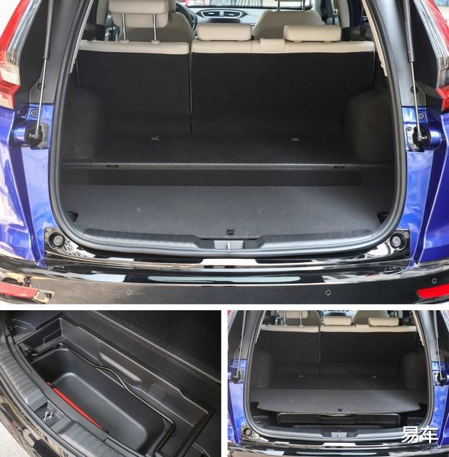 不过CR-V锐·混动e+后备厢还是有所不同的,后备厢里边多了一级“台阶”,这也是电池组唯一影响到的地方。