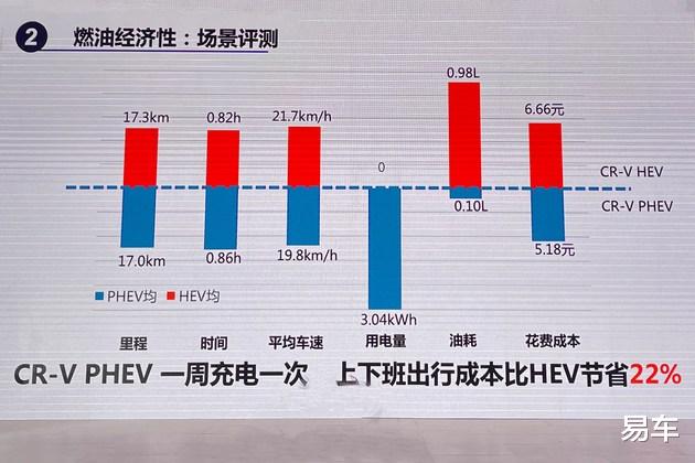 他们实测得出CR-V PHEV的城市/高速纯电续航分别为78.6/73.3km,亏电下的城市/高速百公里油耗分别为4.9L及5.4L。可见CR-V PHEV在亏电状态下的燃油经济性相比HEV混动车型确实会有一定的提升,可以节约一定的用车成本。