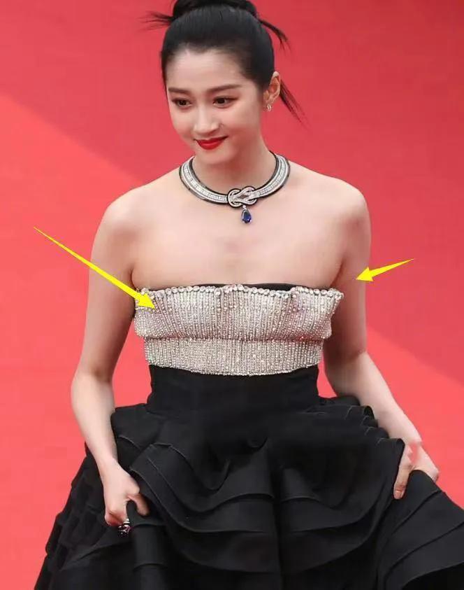 事后她自己发文解释,是临走衣服蹦开了,只能赶紧缝一下。这礼服质量着实有点差啊。